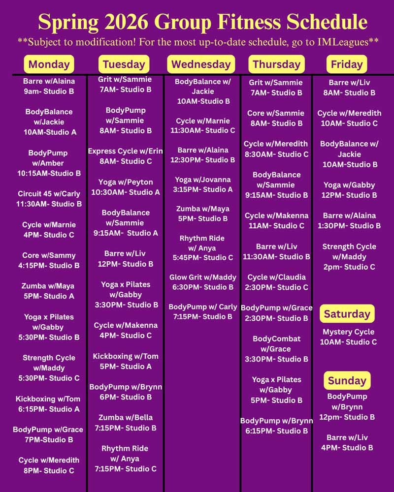 Find our full schedule and sign up for all our classes on IMLeagues!